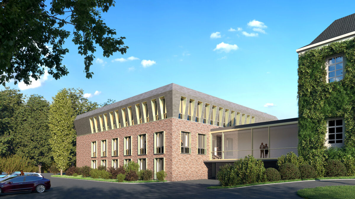 Das Gebäude aus den 1960er Jahren wies erhebliche bauphysikalische und technische Mängel auf, das tragende Stahlbetonskelett war stark angegriffen und nicht mehr tragfähig. Neben der Ertüchtigung und Verstärkung der Tragstruktur hat das Gebäude eine komplett neue Hülle aus wärmegedämmten Aluminiumfassaden, Glas- und Natursteinfassaden aus Sandsteinplatten erhalten, die technische Infrastruktur ist ebenfalls komplett erneuert worden. Ein dreigeschossiger, kompakter Atriumneubau ist über ein gläsernes Treppenhaus mit dem Hauptgebäude verbunden und beherbergt die Büros der Dozenten. Das Gebäude liegt nun als gläserner Solitär in dem umgestalteten Park des Geländes der Führungsakademie.