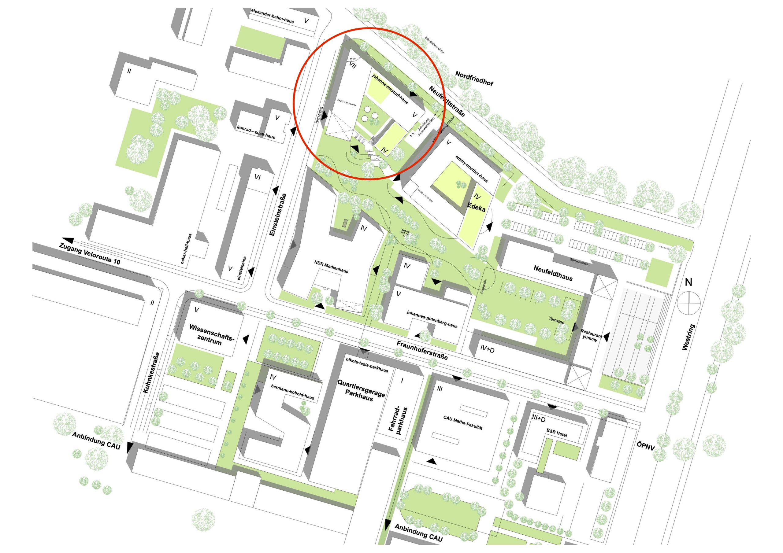 - Bauherr: Frank Heimbau Kiel GmbH (Studentenwohnen), BIG Anlagen GmbH (Seniorenwohnen)