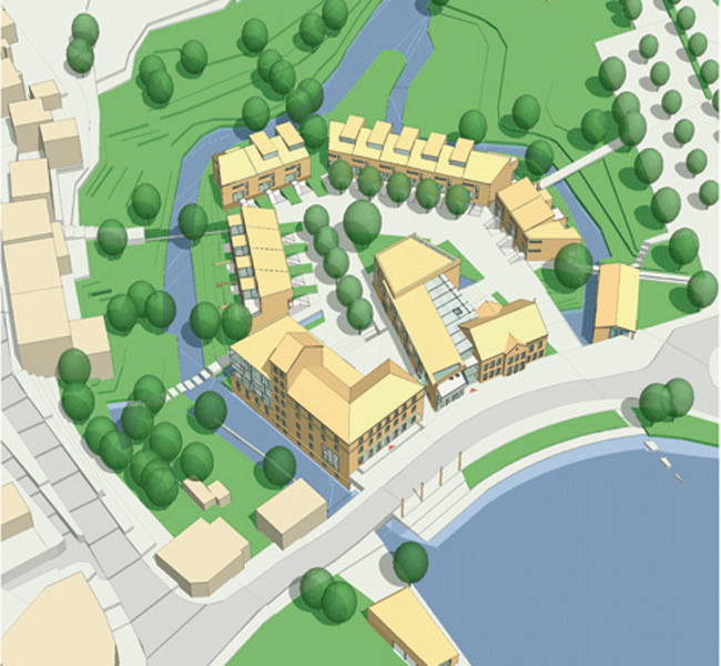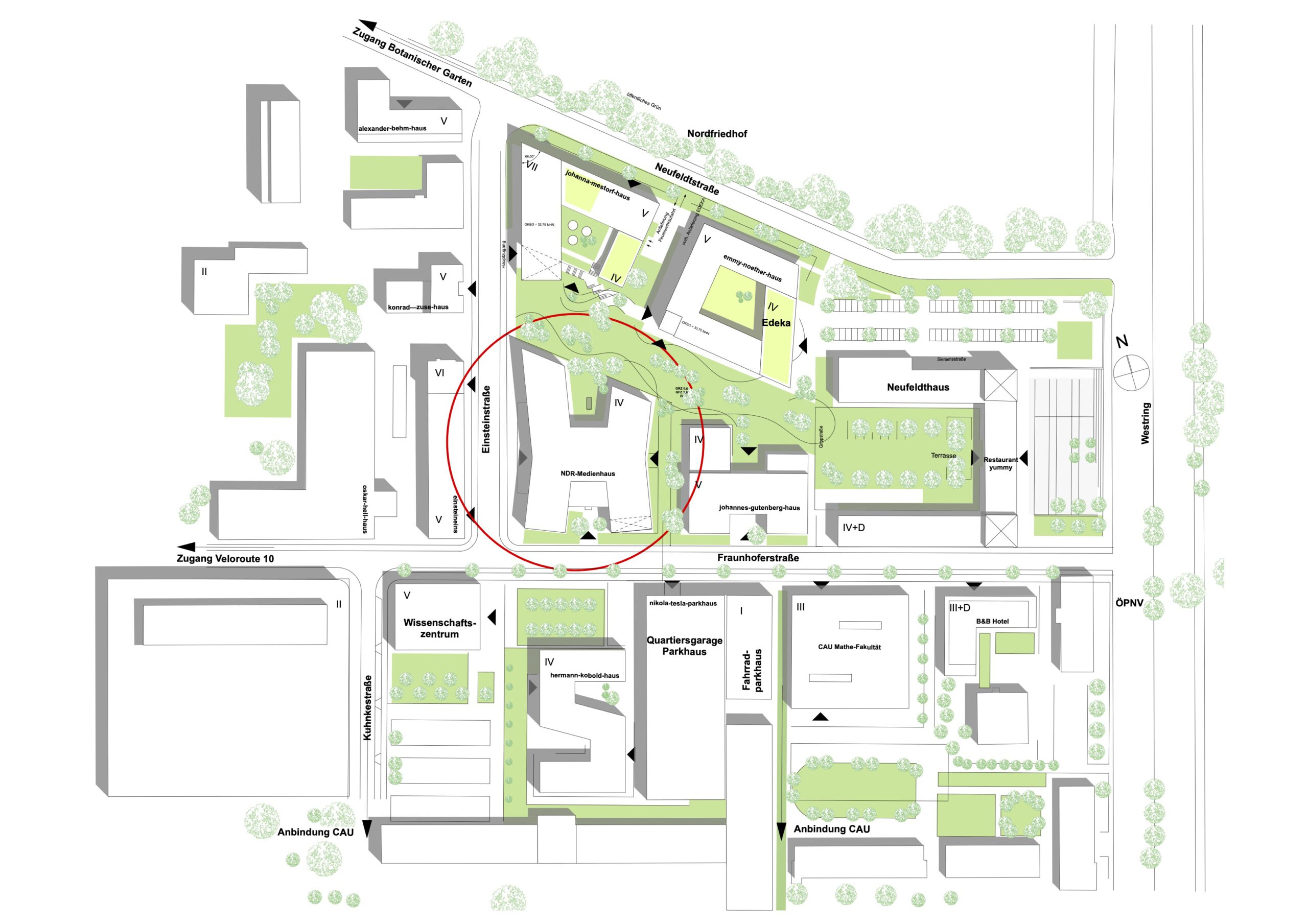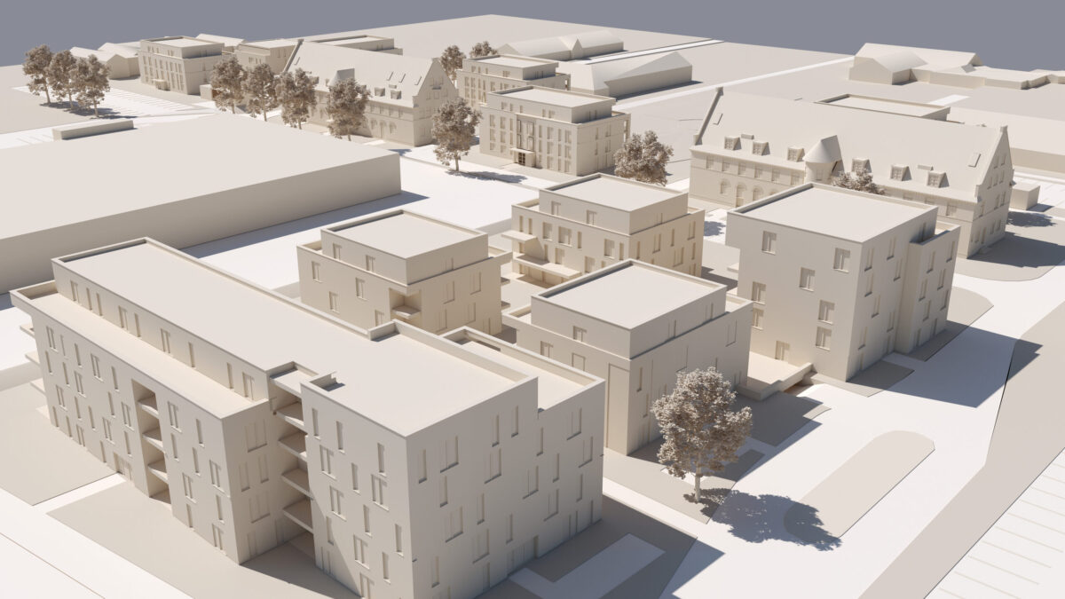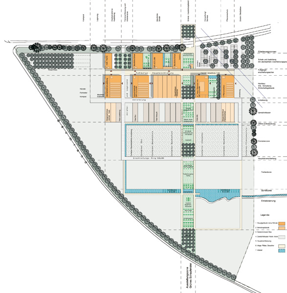 Der Entwurf übernimmt die Festsetzungen und gestalterischen Vorgaben aus dem städtebaulichen Realisierungswettbewerb und den weiteren Planungen aus dem Verfahren der Bauleitplanung und der Gestaltungssatzung.