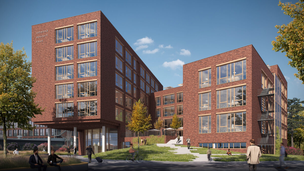 Auf dem innerstädtischen Gelände der ehemaligen Holstenbrauerei ergab sich die Möglichkeit, ein Wohnquartier in attraktiver Wohnlage zu errichten. Der Entwurf für das neue Wohnquartier leitet sich aus den Besonderheiten der städtebaulichen Lage ab: Die hohe Randbebauung aus der Gründerzeit bildet einen massiven, schützenden Rahmen für die kleinteilige Neubebauung, die als aufgelockerte, lebendige Struktur in diesem Rahmen angeordnet ist. Die Baukörper bilden im nördlichen Bereich eine offene Zeilenstruktur mit differenzierten Raumfolgen. Diese privaten Freibereiche sind keine bloßen Abstandsflächen, sondern durch die Richtungswechsel entstehen individuelle Zonen, deren Breite auf die Geschossigkeit abgestimmt ist. In der Gesamtanlage mit 316 Wohneinheiten sind unterschiedliche Wohnformen miteinander verknüpft. Im Eingangsbereich ein Büro- und Geschäftshaus mit anschließendem Studentenwohnheim und Seniorenwohnanlage. Nördlich der Erschließung liegen 6 Blöcke mit geförderten und Eigentumswohnungen.